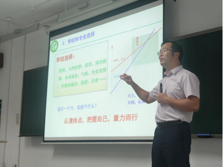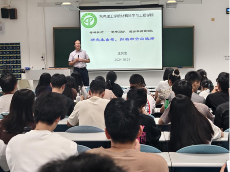 在交流会上,王安定教授以“考研原动力”为切入点,结合亲身经历展开叙述。他强调,从“定目标”到“遇困境”到“调计划”再到“成功上岸”,最重要的就是两个字——“坚持”。讲述时,王安定教授引用大量身边实例,分析了当前员工考研出现的一些普遍性问题,他谈到,研究生生活并没有想象中“有趣”,它是对科学领域更深入的挖掘,兼具专业性和挑战性,建议同学们理性对待考研一事,将学习兴趣和未来规划有机结合,寻找出一条最适合自己的发展道路。随后,王安定教授紧紧围绕备考、报名和方向选择展开了详细讲解,让同学们进一步拓宽考研路径、丰富考研选择、明晰考研目标。最后现场交流环节,同学们就感兴趣的问题积极发问,王安定教授逐一分析和耐心解答。