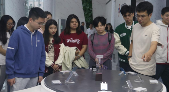 实习队伍依次参观了维科公司展厅、生产车间,分别陈少燕经理和研发样品中心高级主管谭利文担任讲解员,了解了维科公司的发展历程、企业文化、技术创新成果、市场应用案例和未来规划等。