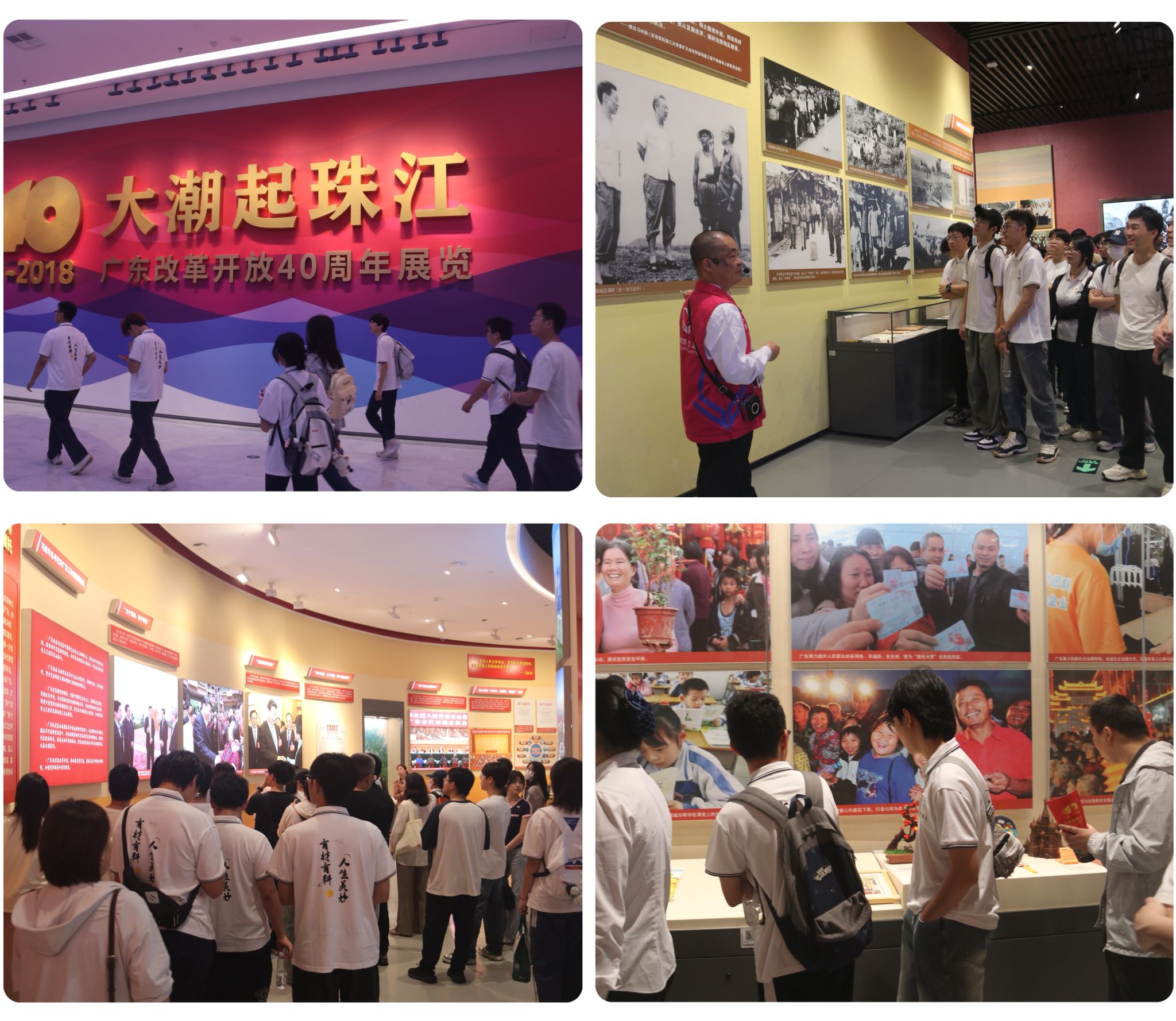 师生一行集体参观了“大潮起珠江——广东改革开放40周年展览”。在讲解员的带领下,师生们依次参观了“敢为人先 勇立潮头(1978~1992)”“增创优势 砥砺前行(1992~2012)”“走在前列 当好窗口(2012~2018)” 三个主题展厅,通过历史图片、文献实物、全息影像、场景还原等丰富的展陈形式,系统回顾了广东改革开放40年波澜壮阔的发展历程,深切感悟深圳作为改革开放“窗口”和“试验田”所展现的敢闯敢试、敢为人先的创新精神。