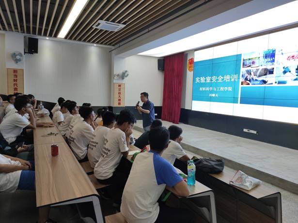 紧接着是刘啸天老师的主场,简单的介绍了一番之后。刘老师开始进入正题,从对实验仪器的分析、具体的一些操作的要求、特殊实验的一些注意事项以及我们实验需要的注意事项和品质等方面,进行深入的分析讲解,对实验室安全做了一个较为全面而深刻的讲解。