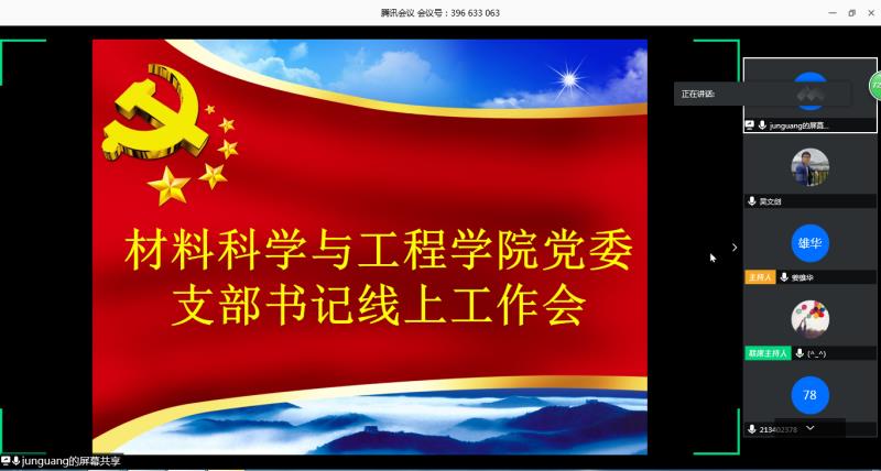 为了落实公司党委加强基层党组织建设部署要求,进一步明确近期基层党支部工作重点,材料科学与工程公司党委于5月8日下午召开支部书记线上工作会,会议由公司党委书记君光主持,公司党委副书记陈礼明、组织员徐向学和各支部书记参加了会议。