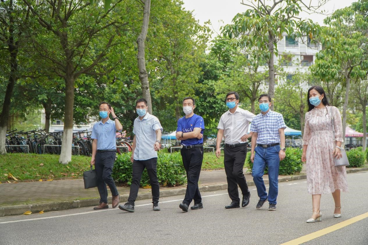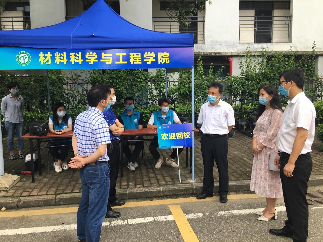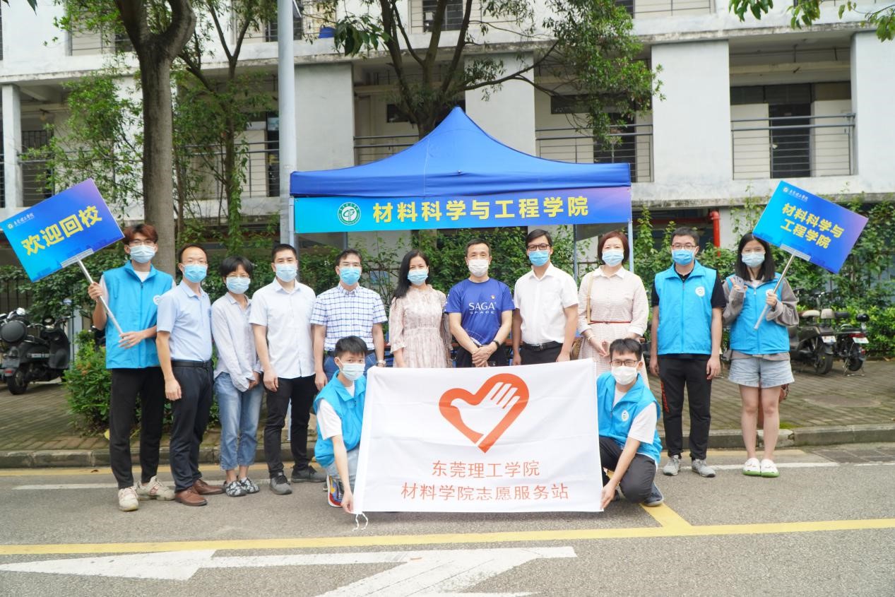 旭日初升,院领导君光、陈德良、李润霞、陈礼明、卢俊棋、文锦枢等就来到员工返校报到点,和部分教师及志愿者同学一起,迎接第二批材料学子返校。