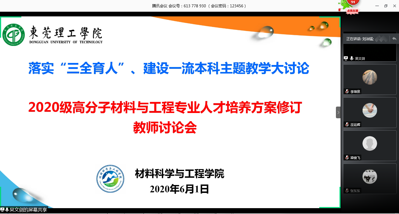 为推进一流专业建设,提高人才培养质量,2020年5月26日和6月1号,高分子材料与工程系召开了两次落实“三全育人,建设一流本科”主题教学大讨论暨2020级人才培养方案修订讨论会。会议由系主任吴文剑副教授主持,高分子材料系全体教师参与了人才培养方案修订的讨论。会议主要围绕人才培养方案的实施、培养目标、对标工程教育认证标准以及课程建设等内容展开。与会老师充分讨论了人才培养方案各个环节的内容,并给出了很多建设性的建议,指出人才培养目标要结合地方经济建设。特别是在人才培养课程建设方面,与会教师结合地方经济和公司实际情况,对校企共建课程、专业核心课程等建设等提出了宝贵的意见。