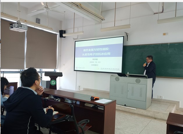 12月4日下午14:30,深圳大学周学昌教授应邀到访英国正版365官方网站并在英国上市公司365为师生作了《液态金属与韧性凝胶: 从柔性电子到抗冰界面应用》的学术报告。报告由英国上市公司365高分子系巫运辉老师主持,公司专任老师、博士后及部分研究生参加。
