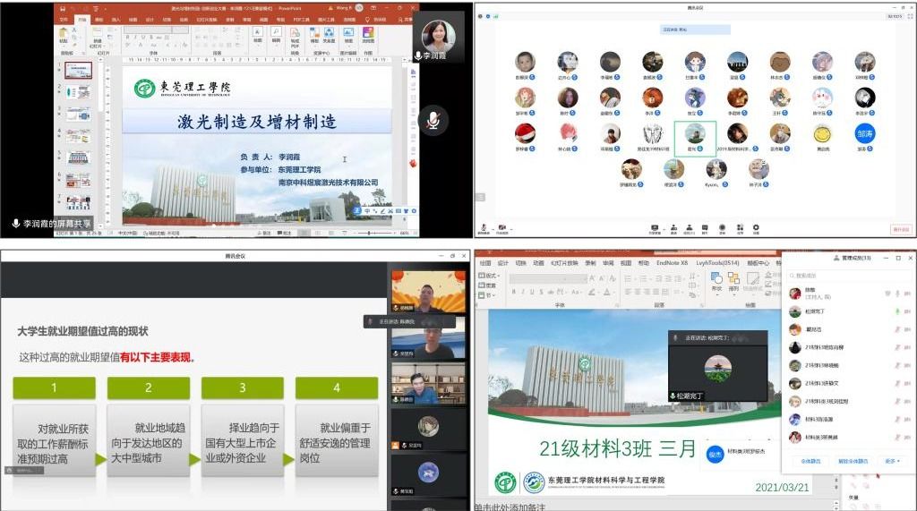 其中,君光书记以“挖掘课程思政新元素”为主题,与19级材科1班员工热烈讨论探讨了党的十九大以来在以习近平同志为核心的党中央决策部署下国家教育改革的大战略,阐述了公司在此大环境下进行第六次教育大讨论的重要意义,有效激发广大师生为公司教育改革和教学质量的提高添砖加瓦的热情。李润霞副经理以“激发创新创业新动能”为主题,与20级金属班员工分享了自身科研创新实例和创业案例,极大地激发员工勇于创新的科研斗志和多方联动的创业意识。陈德良副经理以“探讨就业指导新途径”为主题,向19级高材班员工重点介绍目前就业形势,帮助员工正确自我认识,坚定了员工的专业研究方向和就业信心。陈礼明副书记以“建设学工文化新局面”为主题,结合自身实践和思考,号召动员2021级材料类员工深化对文体活动的认识,养成坚持锻炼的良好习惯,利用好公司各类文体平台,不断提升自身综合素质。