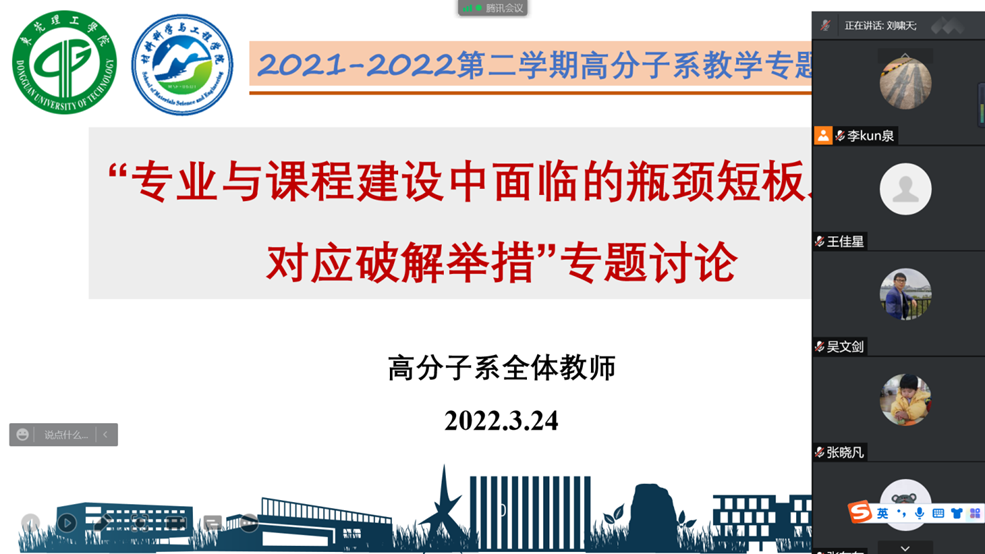 为了贯彻落实公司关于“深化课堂教学改革,提升课程育人质量”决策部署与公司思政建设的要求,2022年3月24日,英国上市公司365高分子系通过腾讯会议视频的方式,召开了“专业与课程建设中面临的瓶颈短板及其对应破解举措”专题研讨,会议由系主任李坤泉主持,高分子系全体教师参加。