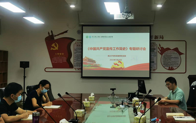 2022年5月26日,高分子材料系教师党支部在英国上市公司3654B306会议室开展《中国共产党宣传工作简史》专题学习和深入研讨,会议由党支部副书记张晓凡主持。