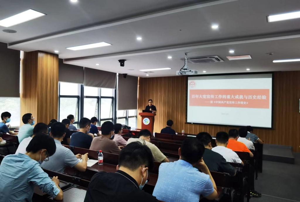 毛安翼副教授以“百年大党宣传工作的重大成就与历史经验”为主题,将《中国共产党宣传工作简史》分成四个阶段进行讲解,从新民主主义到社会主义建设时期再到改革开放最后到中国特色社会主义新时代,让我们全面了解中国共产党的宣传工作历程。最后,他以“立场、立足、中心、手段和表达”画龙点晴总结了中国共产党的宣传工作,并倡议全体教职工增强政治担当,做好意识形态工作。