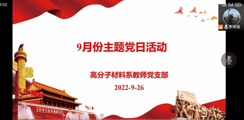 9月26日,高分子材料系教师党支部开展“勇于自我革命,永葆先进纯洁”线上主题党日活动,会议由支部书记李坤泉主持,全体党员参会。