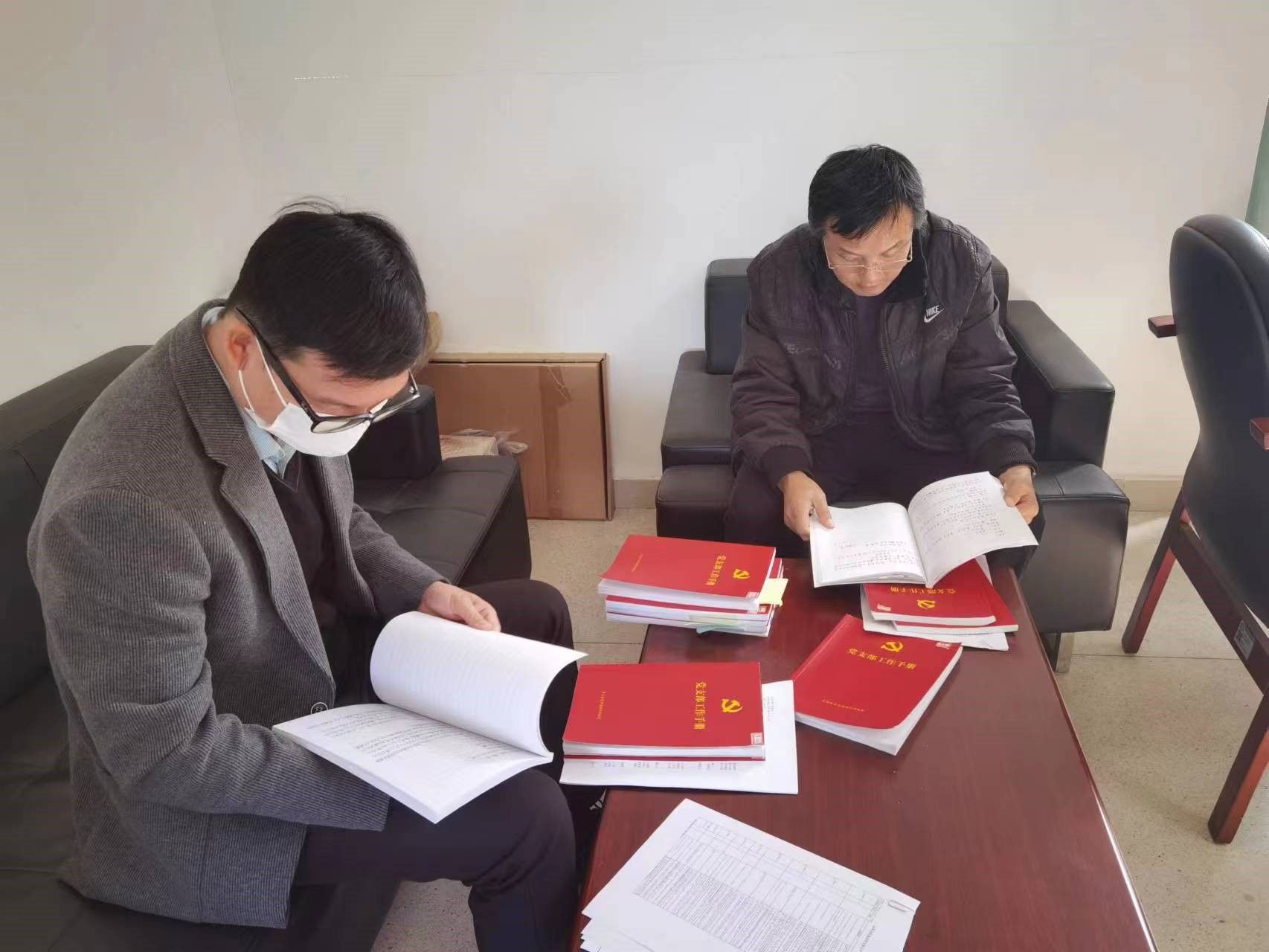 核查小组采用线上线下结合各党支部自查自评情况,以落实支部“第一议题”、“三会一课”等为重点核查内容,以查阅资料、交叉互评的形式,深入开展实地核查,现场认真查阅相关档案资料和有关记录,深入分析各党支部党建工作完成情况,据实考评打分。