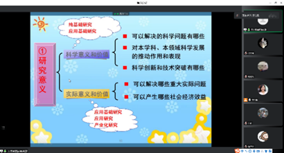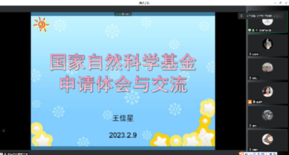 随后,王佳星老师分享了自身申请国家自然科学基金青年项目的体会和经验,提出要做好基金申请前的准备,力求申请书要立意创新、选题准确、方法先进、方案完整,力求用准确、简洁、流畅的语言进行表述。王佳星老师根据自己撰写的经验,分享了青年基金申报书的书写技巧和注意事项。他强调,基金申报书的各个部分是息息相关的,书写过程中要保证各个部分要相互对应。