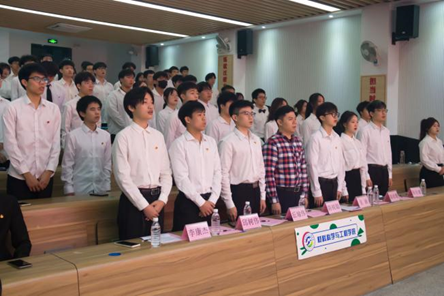 会议伊始,辅导员陈锐聪老师带领全体人员歌唱中国共青团团歌。