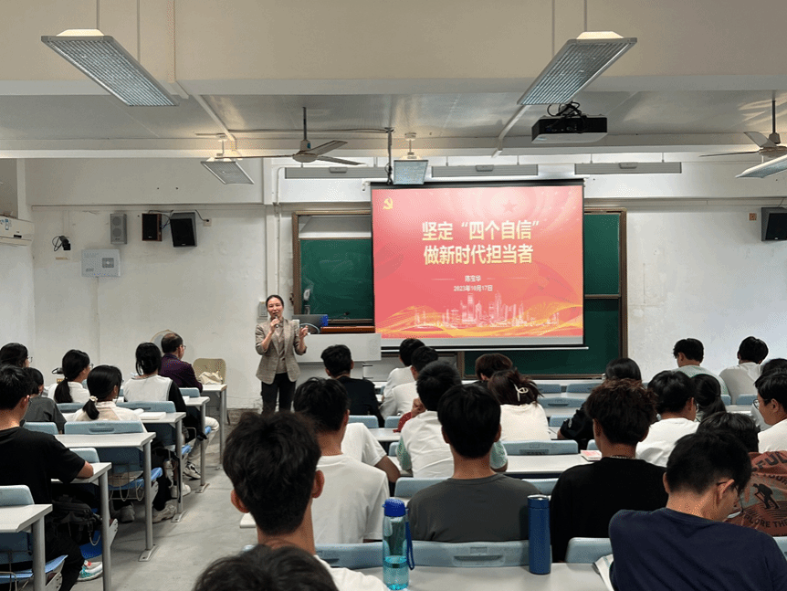 10月17日下午,公司党委书记陈宝华在教学楼6F402为2023材料类4班、5班、材科1班(广医联培)员工讲授了秋季学期“思政第一课”。