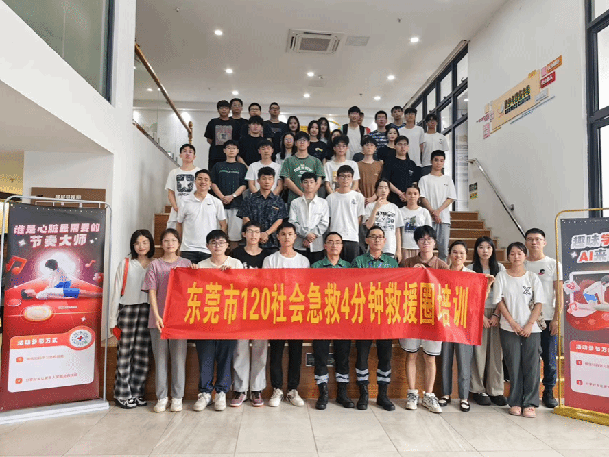 在培训前,师生党员们通过东莞急救小程序完成了自学和线上考核。培训过程中,学员们在讲师的指导下,通过模拟人进行实践操作,逐一练习了心肺复苏、海姆立克急救法等技能,并在救护导师的严格考核下,现场全体师生顺利通过了“初级救护员”的认证考核。
