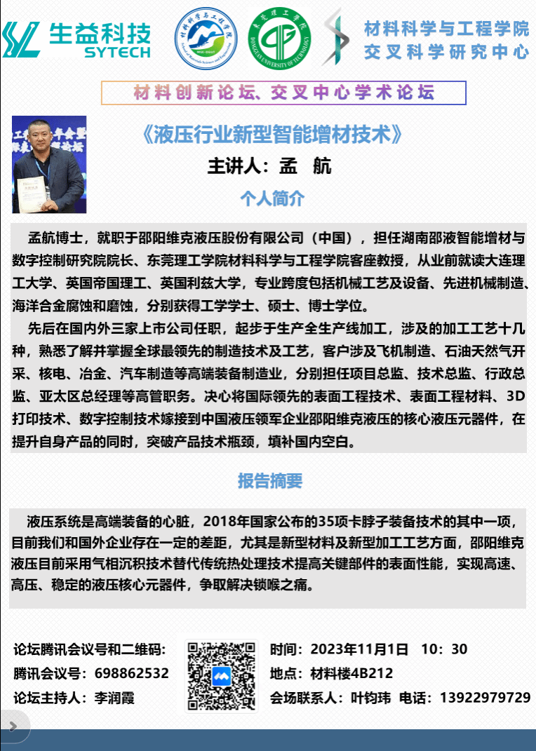 【讲座预告】交叉创新论坛——高锰钢研究及应用、Er3+/Nd3+/Yb3*掺杂铌酸镧光致发光性能探究