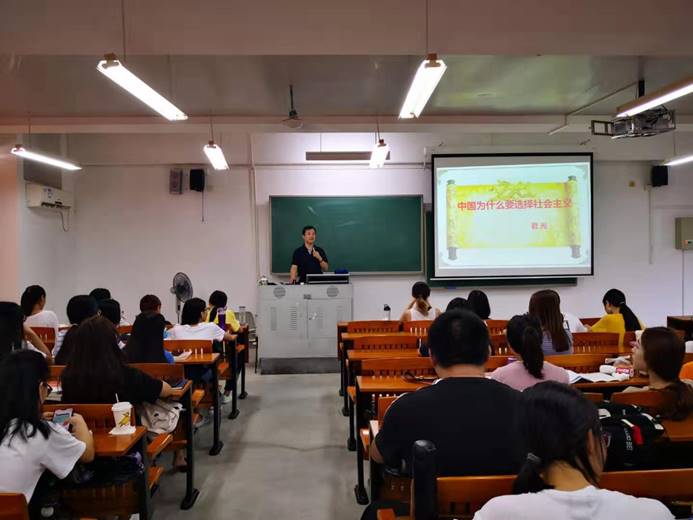 9月18日上午1-2节,材料科学与工程公司党委书记君光老师在教学楼6F504给18级小学教育1班,18级音乐教育1-2班共91名同学上了新学期第一堂主题为“中国为什么要选择社会主义”的思政课。