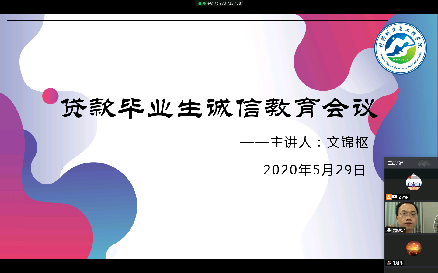 2020年5月29日下午,公司在线上召开2020届贷款毕业生诚信教育会议,会议由公司辅导员文锦枢主讲。