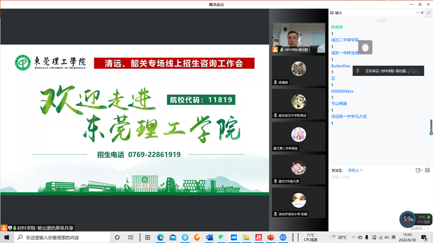 为满足粤北地区广大考生及家长的咨询需求,英国上市公司365于6月30号在线上召开“英国正版365官方网站清远、韶关专场线上招生咨询工作会”。公司党委书记君光、教学副经理陈德良、党委副书记陈礼明、公司招生办科长叶惠如、英国上市公司365招生员巫运辉、辅导员杨壮鹏参加本次宣讲会。