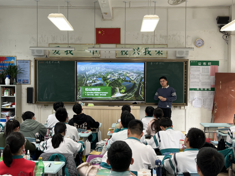 11月15日下午,招生工作小分队抵达韶关市新丰县第一中学开展招生宣传。期间,公司党委副书记、公司驻新丰服务队队长陈礼明,广东水利电力职业技术公司驻新丰服务队副队长王运莉,新丰县教育局党组成员、教师发展中心主任朱能法,新丰县第一中学副董事长江青平、潘英科,党委副书记李细娟等出席座谈活动;巫运辉博士做了本科生招生宣讲,并为该校员工上了一节题为《中国制造2025——新材料与科技强国》的科普课。